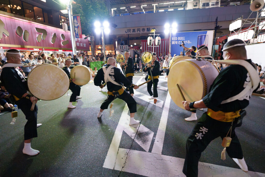 高円寺を中心に、地域のお祭りやイベントなどで活動しています。